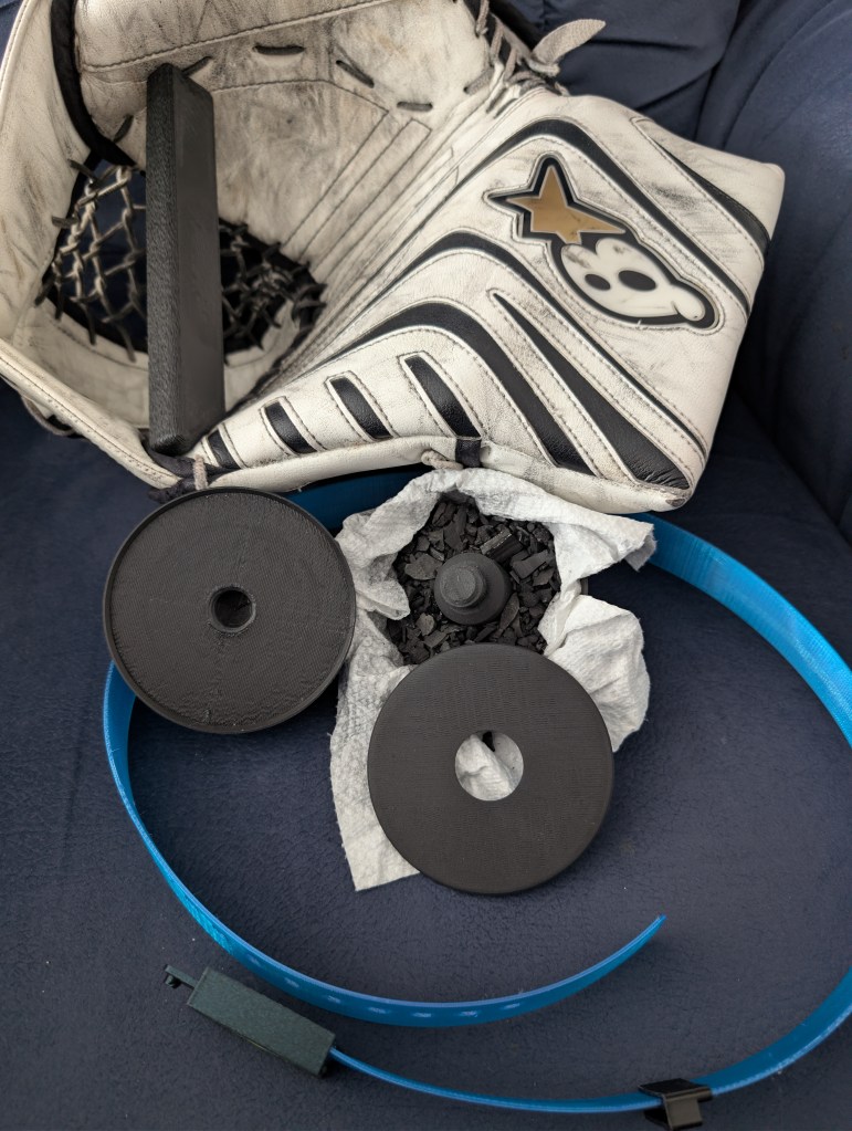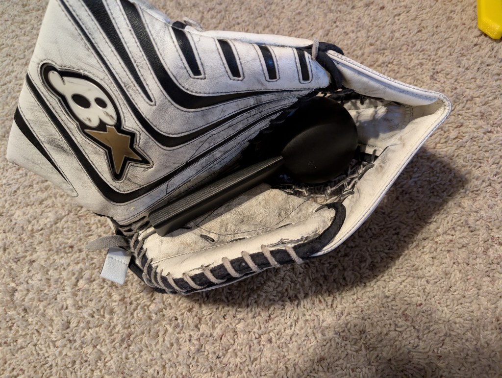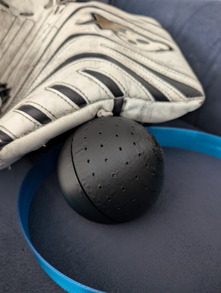 My son has watched several YouTube videos on this subject. Mainly focusing on what to use to help get them in proper game condition. There is a wealth of knowledge on this subject. From his vast research, he asked if I could cut up one of his old sticks and buy a softball to put in the glove. I, being a proper goalie dad said absolutely I would love to do this at 11pm at night. But i stopped him there and said, “We have 3D Printers, let’s design something.”